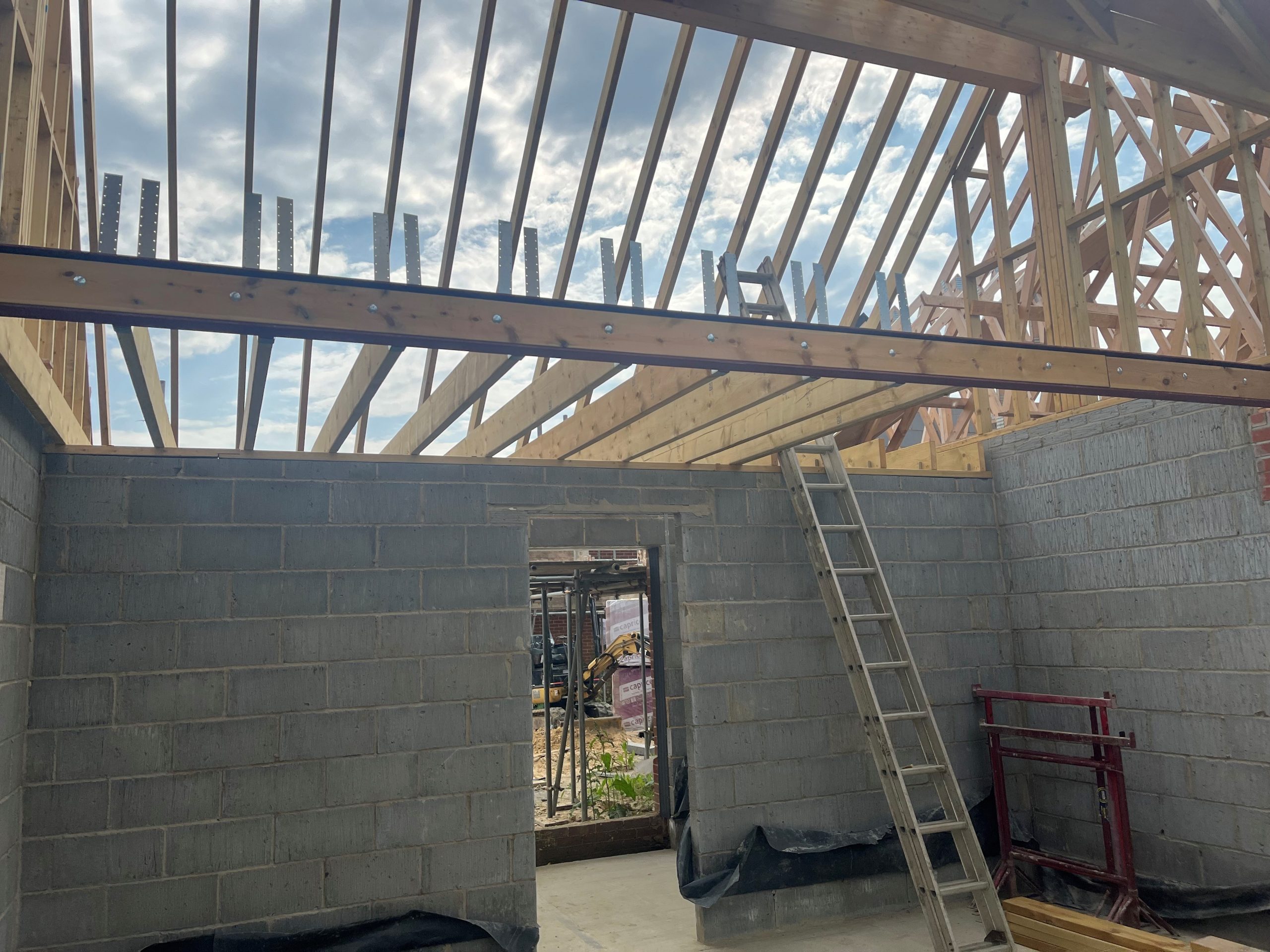 With 85% of the rear ground floor wall of this large property being removed and supported with Acrow props while steels installed.